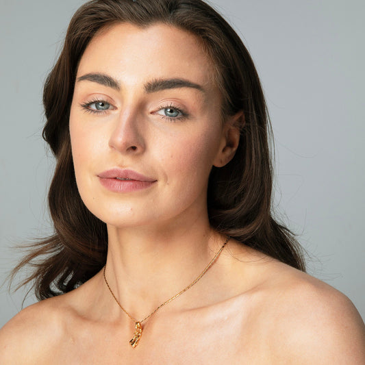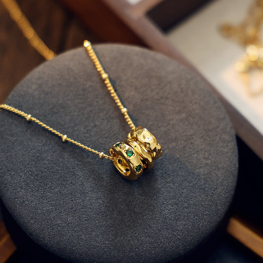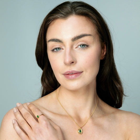 Luxurious 18k Gold Plated Necklace with Green Zircon and Circle Pendant Design