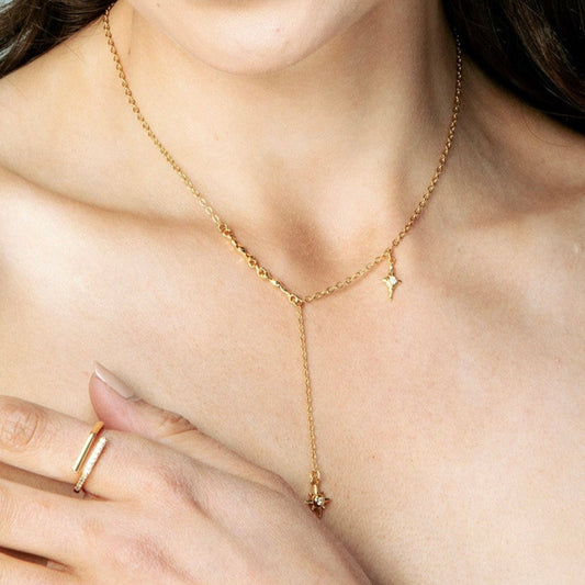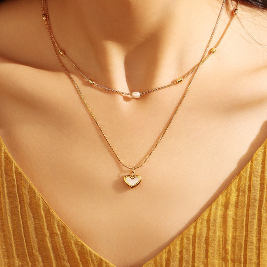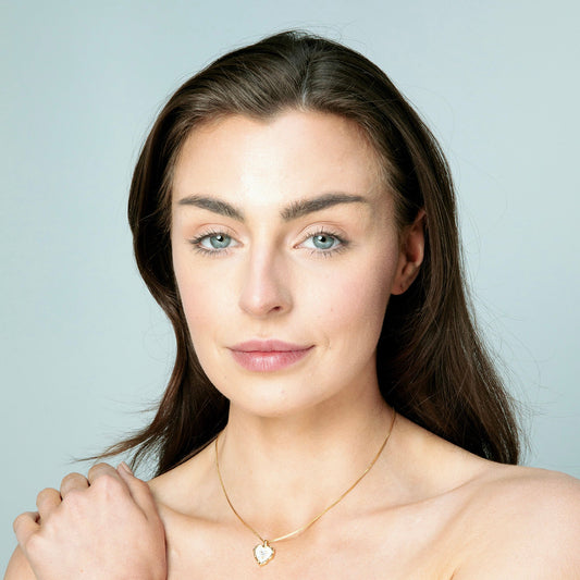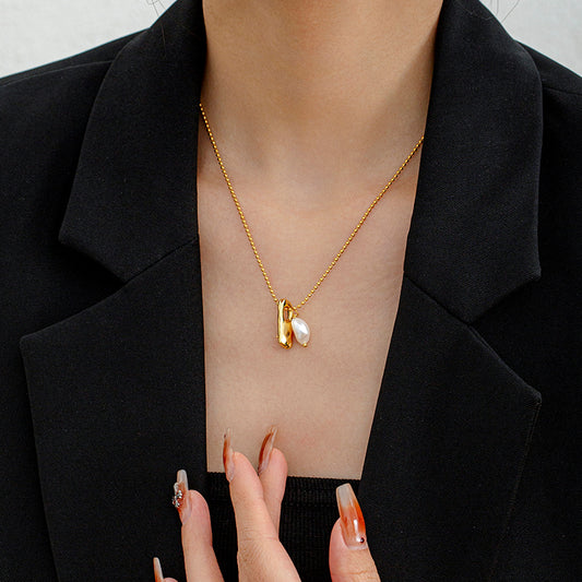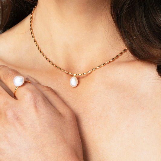 Gold Pendant Necklace with Freshwater Pearl and Zircon Charm